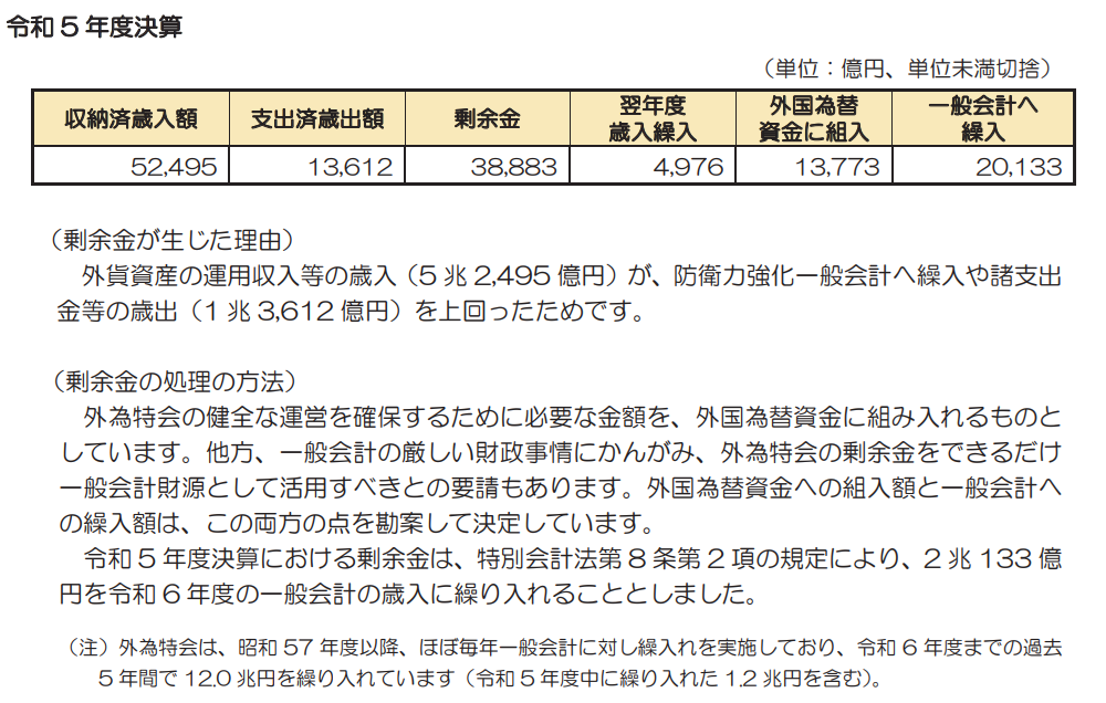 そのため、外為特会は毎年度決算の剰余金が発生しており、それについては、一定のルールの元で一般会計にお金を融通しています。これが半分イエスの内容です。